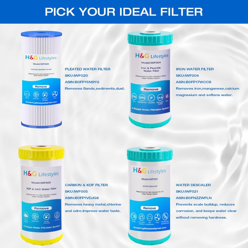 H&G Lifestyles Pleated Sediment Water Filter for Well Water, 5 Micron 10 X 4.5 Whole House Water Filters, Compatible with 84637, WPX5BB97P, PC10, 355214-45, 355215-45, WP10BB97P, WP5BB97P
