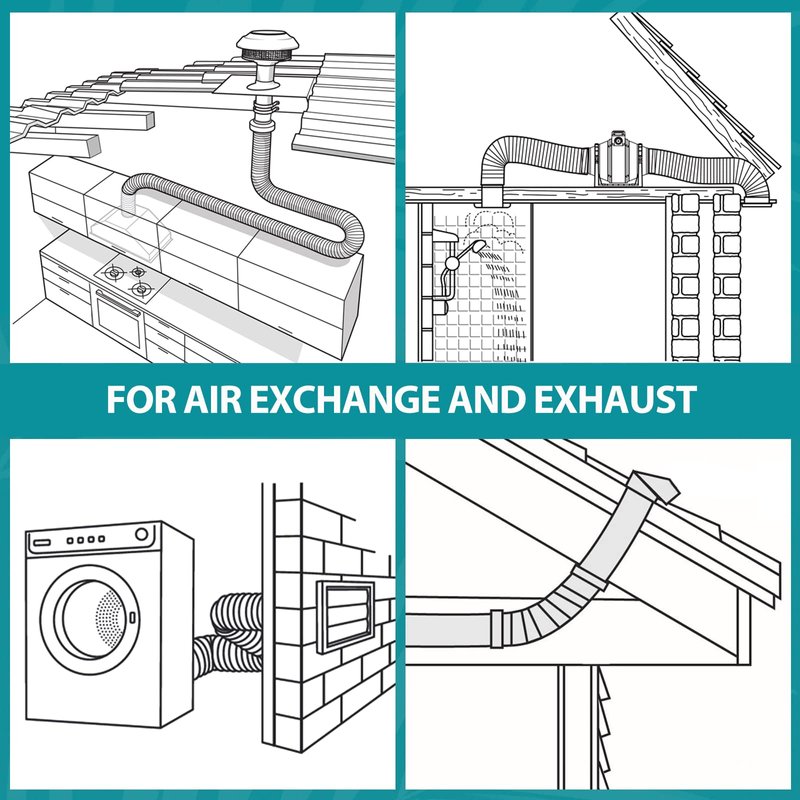 - 【VARIETY OF APPLICATIONS】Dryer vent hose for tight space is mainly used in HAVC ventilation systems, including kitchens, tumble dryers, bathrooms grow rooms and tents air circulation, and other HVAC applications.