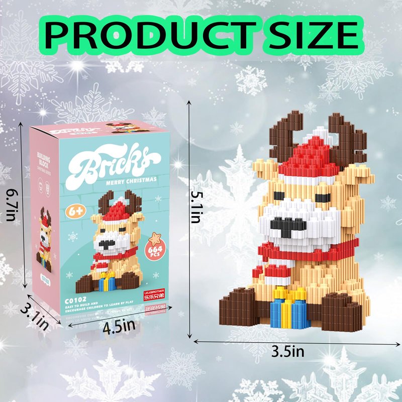 - 【 Christmas Toys 2024】2024 Christmas stacking blocks Reindeer model latest Christmas building toy! Full of exquisite details, Ground edge treatment and will not hurt the hand .Total micro blocks 664 Pcs