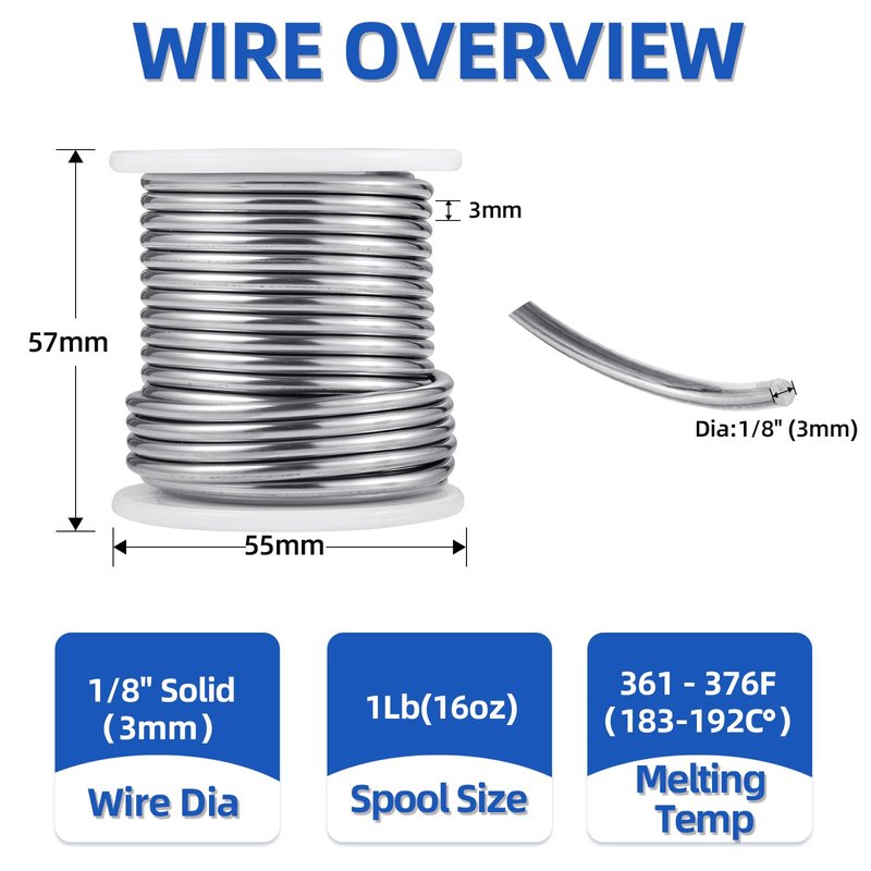 - HGMZZQ's solder wire with a solid core is perfect for those who require solder that can be applied to stained glass. The solder has an external diameter of 3 mm (0.125 inches) and is supplied in a 1lb spool for convenience.