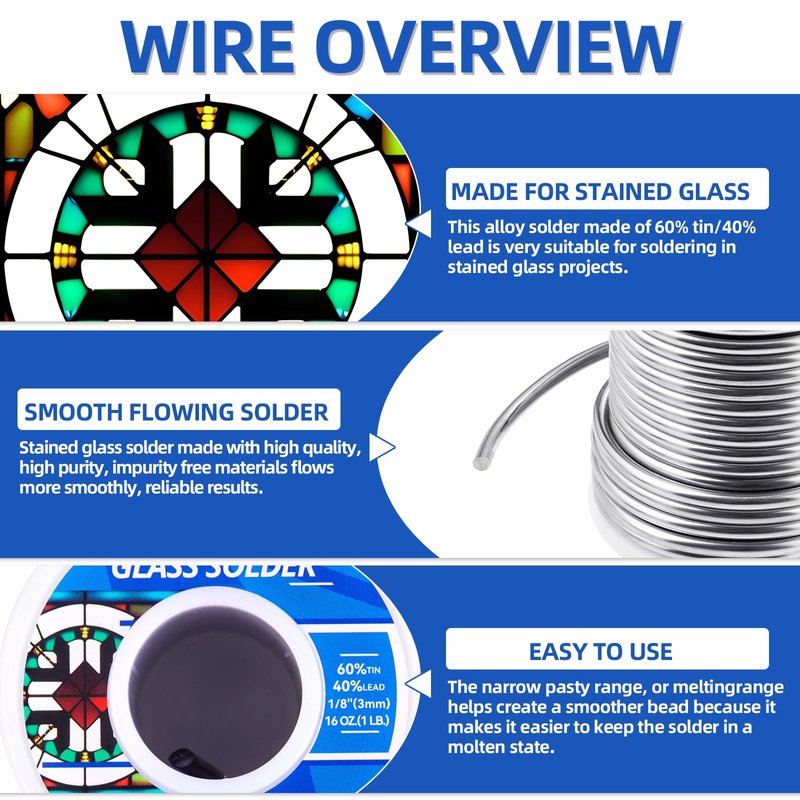 - This product comes in a 16oz weight to ensure you have enough for all your DIY projects. The HGMZZQ Sn60/Pb40 tin lead solder wire is a reliable choice for those who are looking to create beautiful stained glass art pieces.