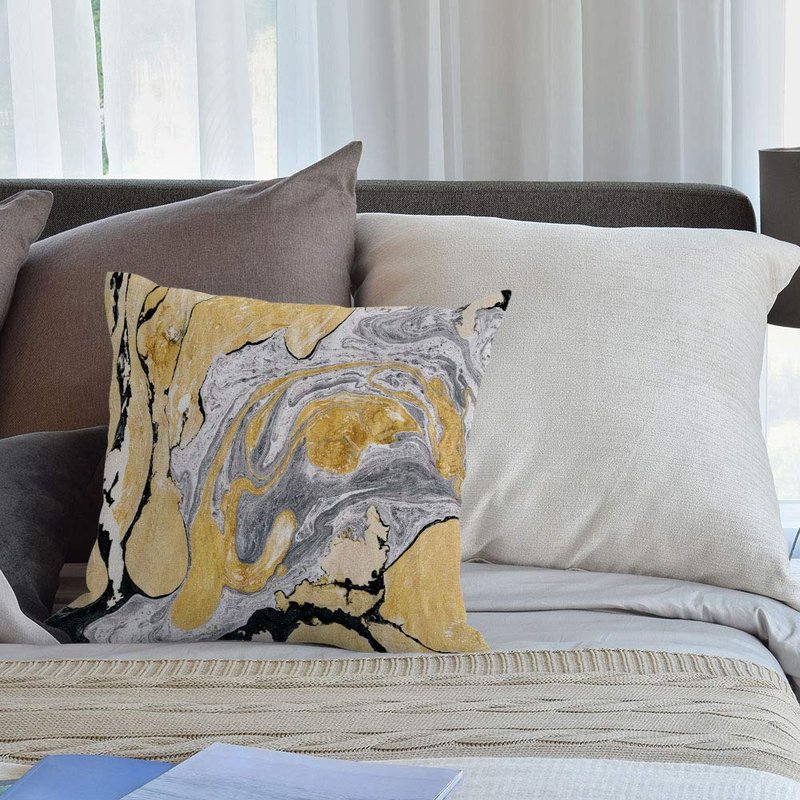 HGOD DESIGNS Throw Pillow Cover Black Gold Golden and Silver Marble Ink Abstract Painting Beautiful Gray Effect Aqua Decorative Pillow Case Home Decor Square 18X18 Inches Pillowcase