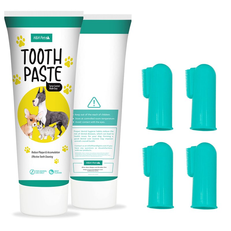 H&H Pets Dog Toothbrushes and Toothpaste Best Professional Cat & Dog Finger Tooth Brush, Dog Brush Set, Perfect for Dogs and Cats, Dog Supplies - Size Small 4 Count 3.5 Oz Toothpaste (100g)