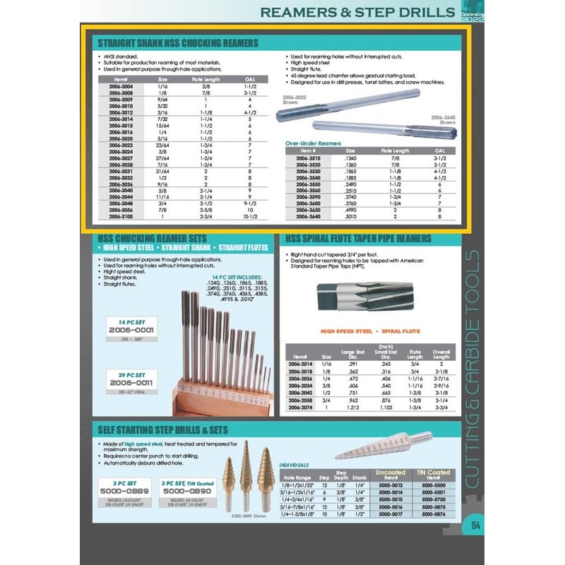 HHIP 2006-3020 5/16" High Speed Steel Straight Shank Chucking Reamer, 1-1/2" Flute Length, 6" Overall Length, 5/16"