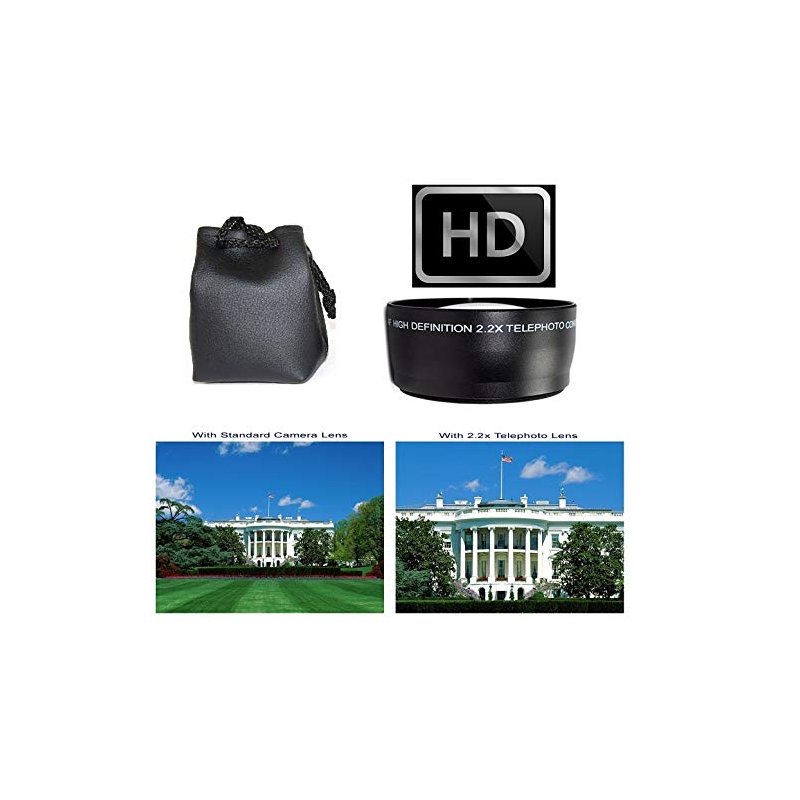 Package Includes: HD 2.2x Telephoto Lens Lens Covers Carrying Pouch Professional High Definition: PHD lens reduces glass flare and ghosting causes by reflections. Special Element Frame: Special matte aluminum satin finish frame reduces reflections and optimized photography. Premium Rimmed Glass: High Quality rimmed glass reduces light reflection around lens edge. Infrared Compatible: For high resolution day and night recording. Compact & Light Weight: So you can use it at any time. Warranty: Lifetime Warranty