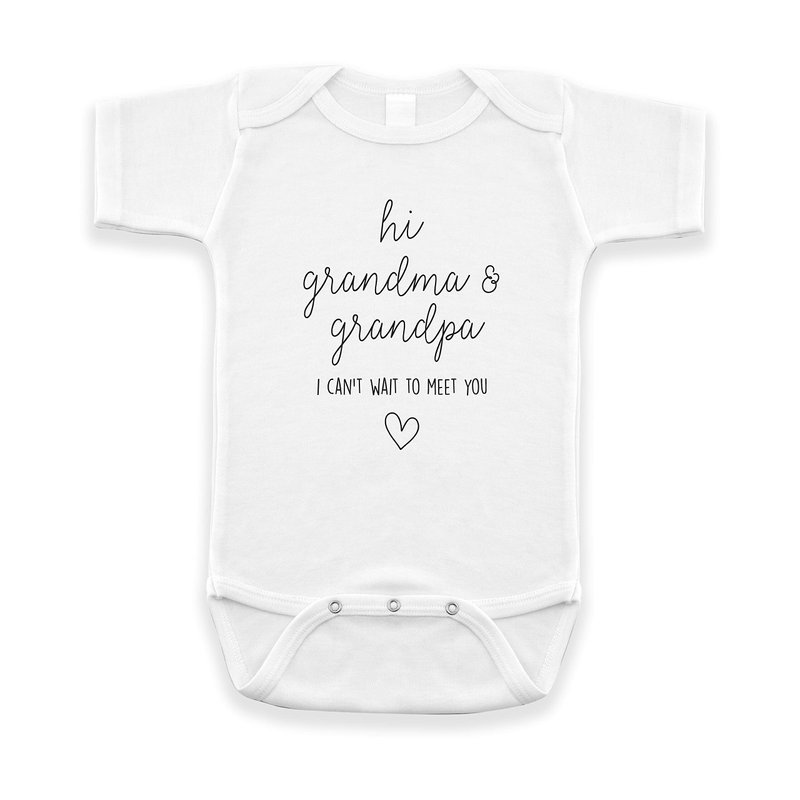 Hi Grandma & Grandpa I Can't Wait To Meet You Pregnancy Announcement Infant Bodysuit - Surprise Gift For Grandparents (White)