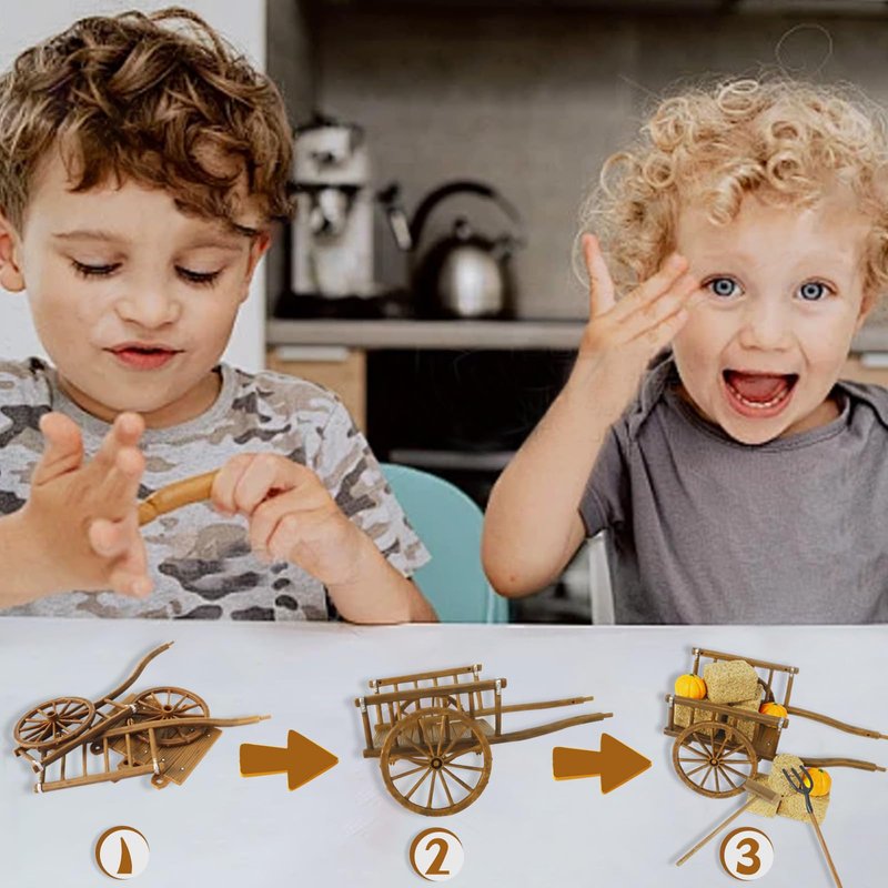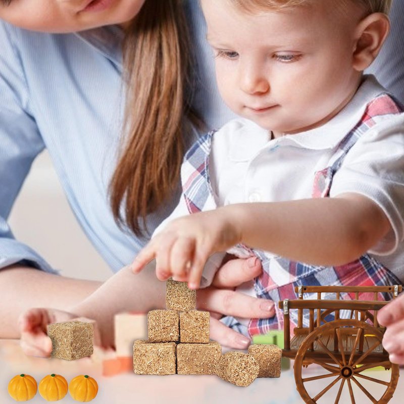 - 14PCS: The harvest miniature set includes 8 mini haystack decorations, 1 plastic cart, 1 set of farming tools, and 3 miniature pumpkins. With everything you need included, this mini hay bales kit is perfect for all your DIY craft and decoration needs. Practical and lifelike.