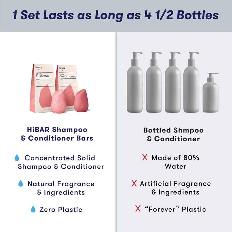 HiBAR Curl Shampoo and Conditioner Set, Bar Shampoo and Conditioner for Hair - Formulated for Textured Hair, pH Balanced, Soap-Free, Plastic-Free Packaging for Eco-Conscious Consumers, Travel Size