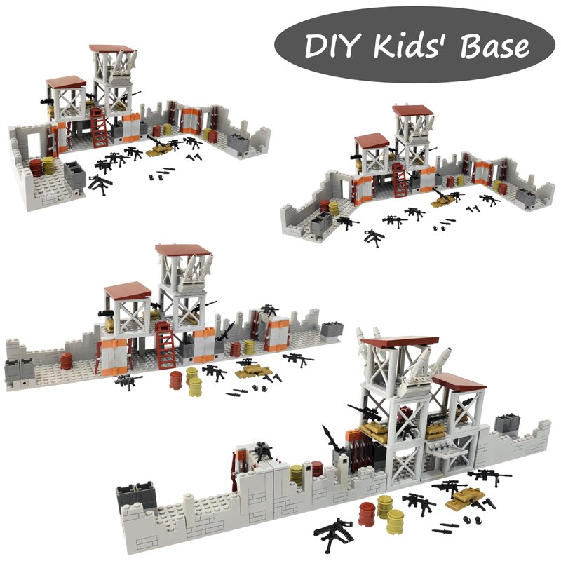 - DIY military base: This military base can change to different war scence. Can build a enclosure or open base for different war simulation as picture shows.