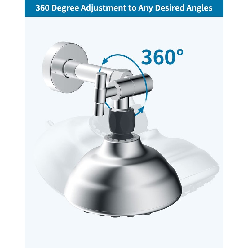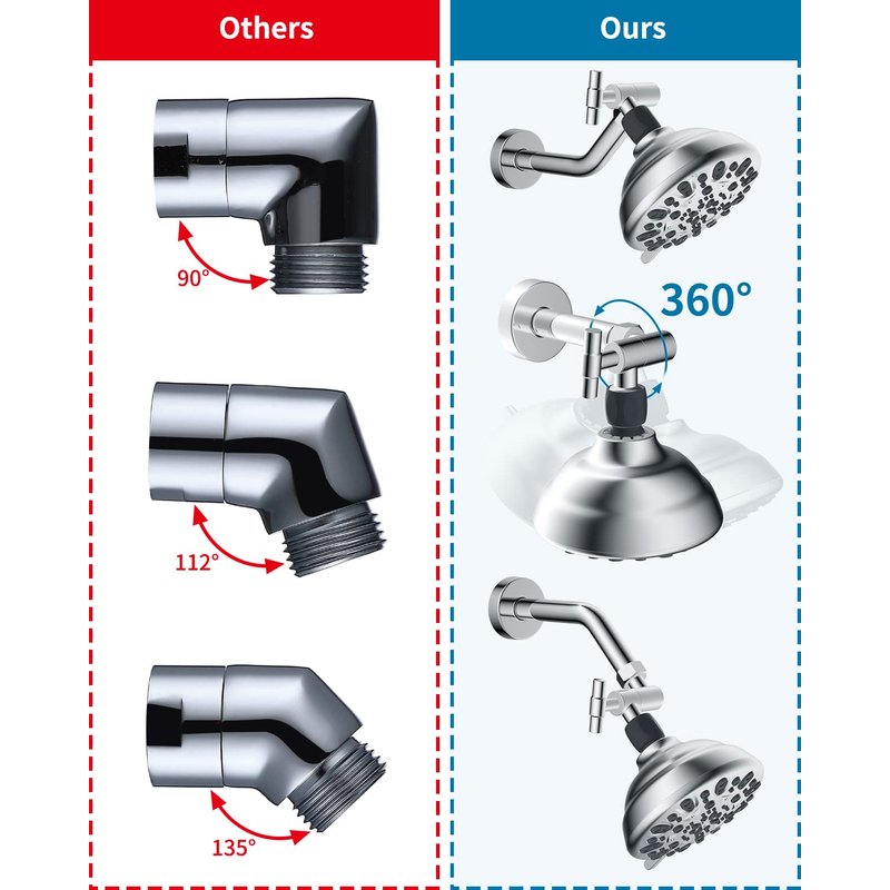 - [360 Degree Adjustable to Any Desired Angles] The shower arm elbow adapter boasts a 360-degree rotating collar, providing a wide range of adjustable angles. In contrast to traditional shower elbows with limited angle adjustment, this innovative design allows for easy modification of the shower's angle and height. Whether used with wall or ceiling-mounted rain showers, the 360-degree elbow adapter offers the flexibility to enjoy an exceptional shower experience from any desired angle.