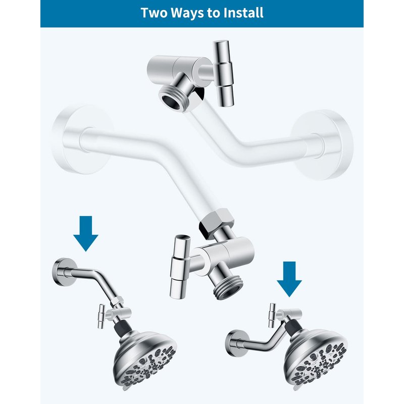 - [2-Way Installation Method] You have a choice of two installation methods for the upgraded shower arm extension. The chrome finish on the Hibbent shower arm adapter makes it resistant to rust and corrosion and prevents it from deforming. It is the ideal match for innovative bathroom design.