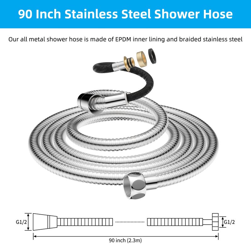 - [Handheld Shower Hose] The 90-inch handheld shower hose is long. You can easily rinse anywhere or wash your child or pet. It's easy to reach target areas with the 90-inch shower head hose, making it ideal for cleaning.