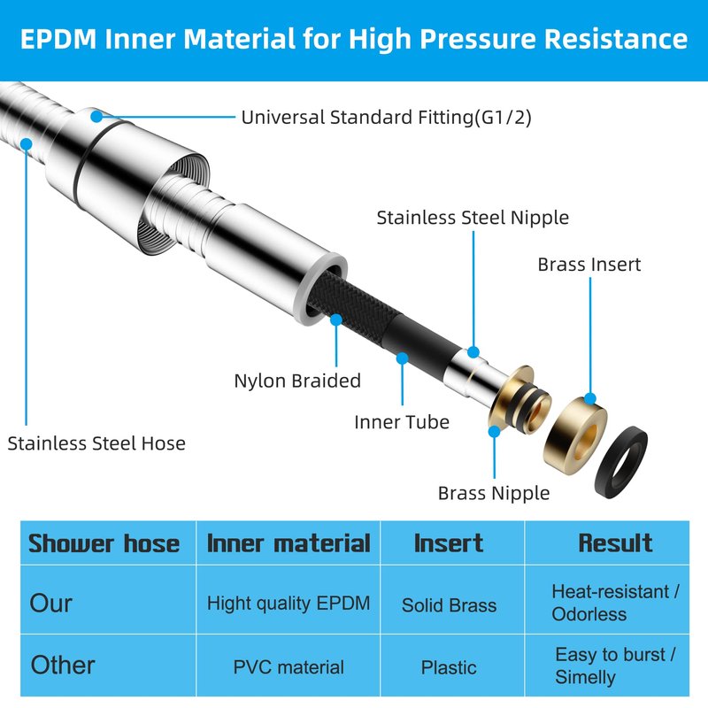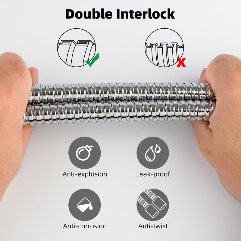 - [Stainless Steel Shower Hose] To ensure longevity, corrosion resistance, and rust resistance, this shower head hose is manufactured of high-quality stainless steel. Its chrome finish also inhibits corrosion.