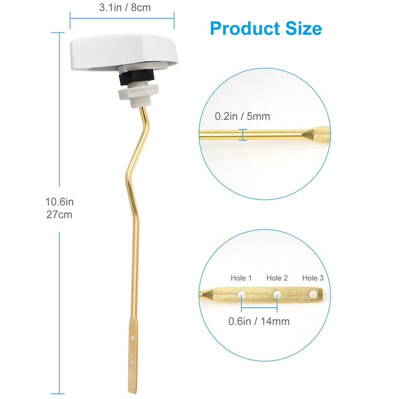 - 【Toilet Flush Lever Size】The flush handle lever's dimensions are 3.14 inchs/8 cm in width and 10.2 inches/26 cm in length. Fits tank holes 0.62 "to 0.67" in diameter. This is an appropriate size for most side-mount flush toilets.