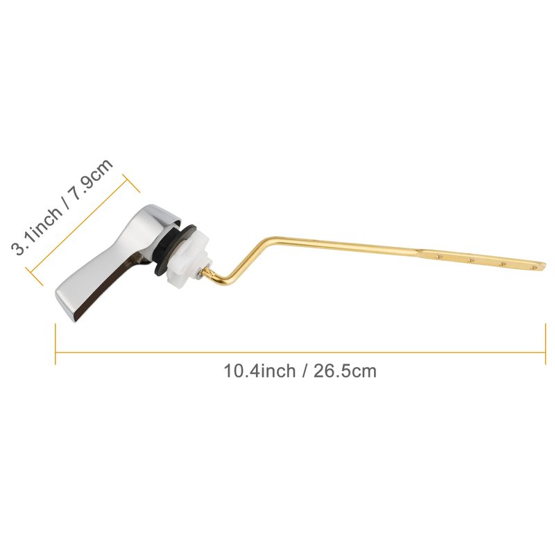 - Size Details: The flush handle lever measures about 8.26 inch/21cm in length, and 2.56 inch/ 6.5cm in width. Proper size for most Angle-mount flush toilet tanks. Fits tank hole diameter 0.62 in. to 0.67 in.