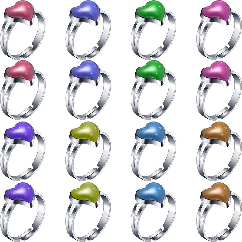 Hicarer 16 Pieces Adjustable Mood Rings Mixed Color Heart Shape Changing Mood Rings for Girls Boys Kids Emotion Feeling Finger Rings Costume Props Halloween Birthday Party Favors Goodie Bag Fillers