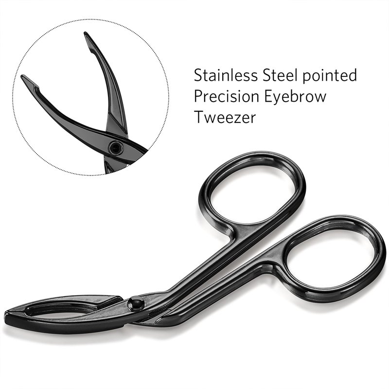 - Quantity: 3 pack black plated scissors shaped eyebrow straight tip tweezers clip; Slant tip tweezers from any angle, comfortable scissor-style handle