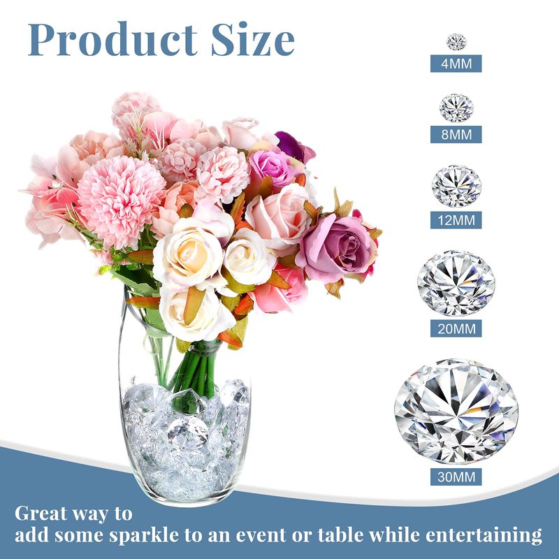 Hicarer 800 Pieces Diamond Decorations Acrylic Diamond Table Scatter Crystals for Table for Vase Fillers Party Table (Clear,30mm, 20mm, 12mm, 8mm, 4mm)