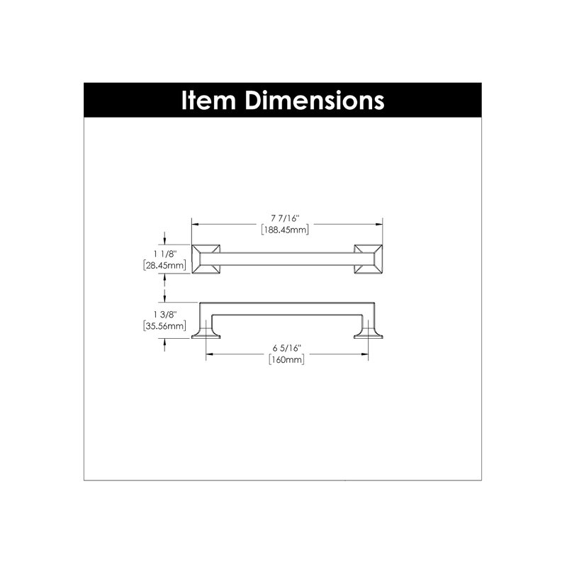 - 6-5/16 Inch (160mm) Center to Center; Projection: 1-3/8 Inch; Length: 7-1/2 Inch; Width: 1-1/8 Inch