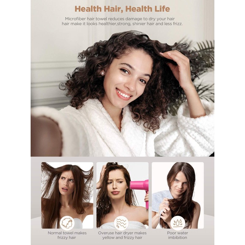 - REDUCE THE HEATED DAMAGE -- Tender microfiber hair towel dry quickly in a healthier way without damaging hair with a hairdryer.