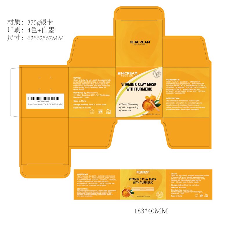- 〖Deep Cleansing & Moisturizing〗: HIcream turmeric Vitamin C clay mask contains Kaolin and Aloe Vera, which can help deeply clean pores, remove blackheads, excess oil, toxins and dirt, relieve daily skin stress, prevent skin acne, nourish skin, and enhance skin water retention ability to solve skin aging and wrinkles.