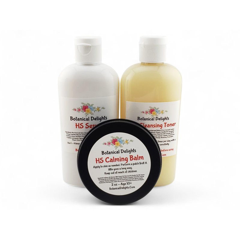 Hidradenitis Suppurativa Cleansing Toner, Serum and Balm - Designed specifically to soothe HS flare-ups - Allows the toxins inside to drain and nourishes the skin