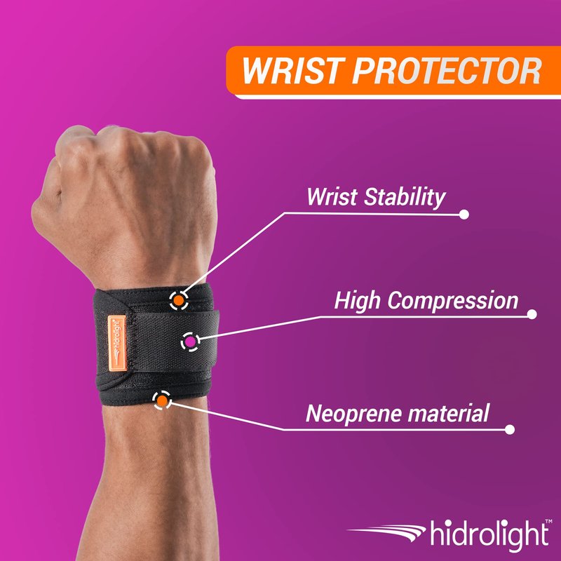 HIDROLIGHT - Wrist protector - Carpal Tunnel Wrist Brace, Pain Relief Wristbands, Wrist Straps for Weightlifting - Wrist Wraps, Non-Slip Grip, Workout Equipment, Wrist Support - Black, One Size