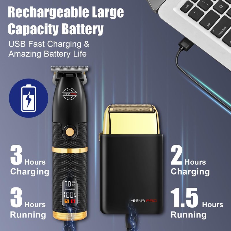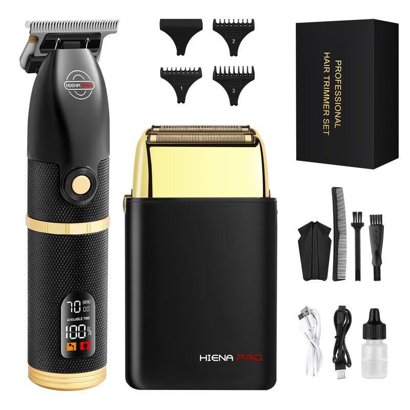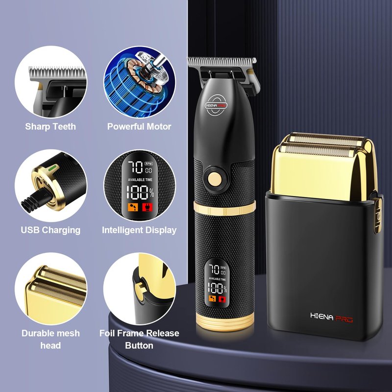 HIENA PRO Hair Trimmers and Foil Shaver for Men Kit,Men Professional Cordless Barbers Hair Clippers with LCD Display,Black Gold Zero Gapped Hair Trimmer, Double Foil Shaver,Gifts for Men