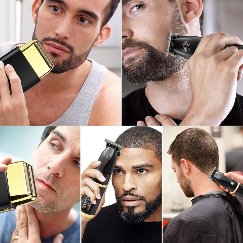 【Electric Shaver and Hair Trimmer Set】The men's electric shavers can help you deal with thick and short beards or hair, and the double foil blade can achieve a close shave. T-blade hair trimmers are used for extremely close trimming, crisp lining, beards, and sideburns. Perfect for all your beard and hair trimming needs.