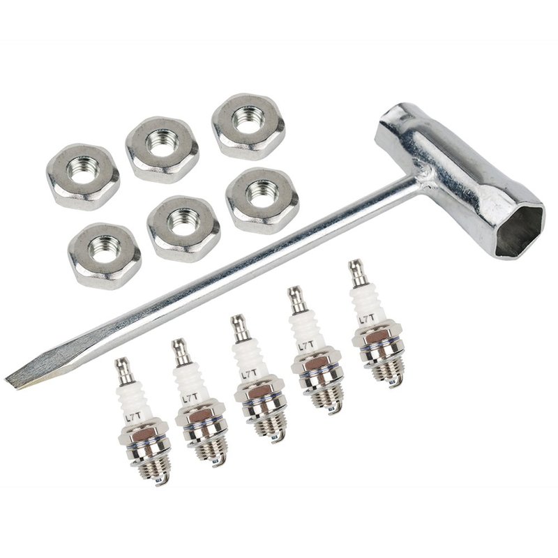 - 4.The chain saw wrench is designed with two ends, and the screwdriver end can be used to screw in slotted screws. The wrench mouth is suitable for fixing and loosening circular screws, and different sizes of sockets can be used for different types of screws. Package include:1 x combination screwdriver and wrench, 6 x Bar nut, 5 x Spark plug