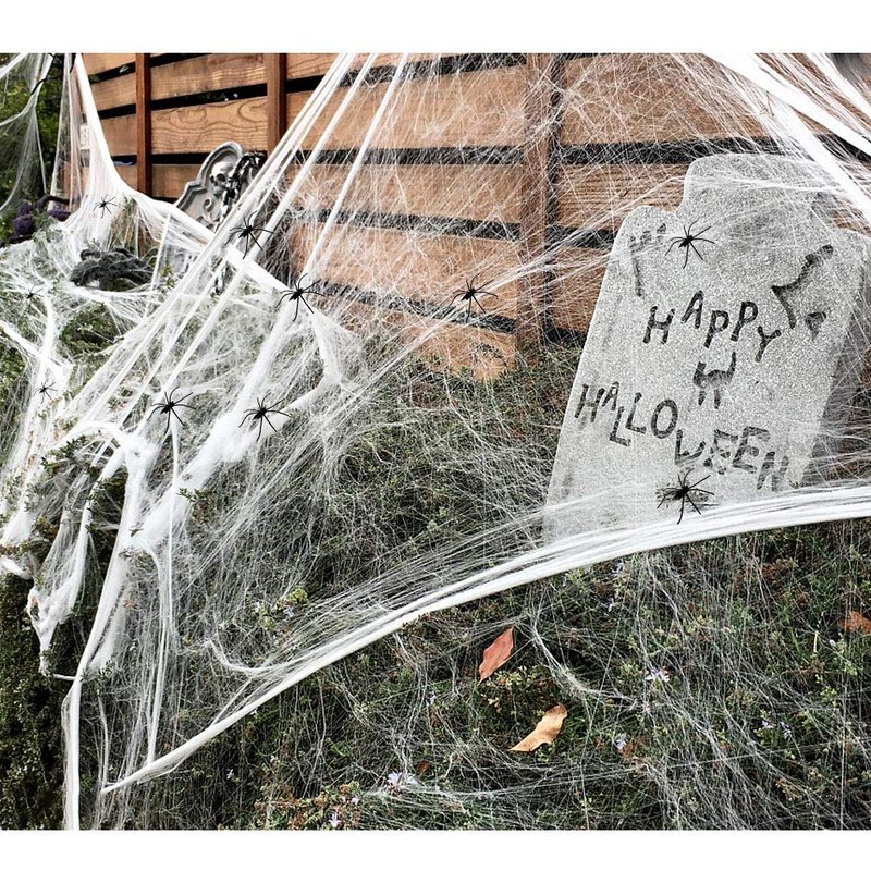 - Halloween Stretch Spider Webs: The fake web is absolutely one of the easiest ways to add a creepy atmosphere to your house, yard and party in Halloween. The more you stretch the spiderweb, the more realistic it looks!