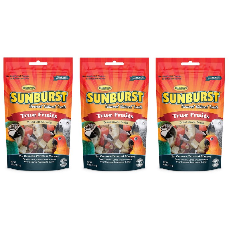 Higgins 3 Pack of Sunburst Gourmet Natural Bird Treats, 5 Ounces Each, True Fruits Flavor, for Conures Parrots and Macaws