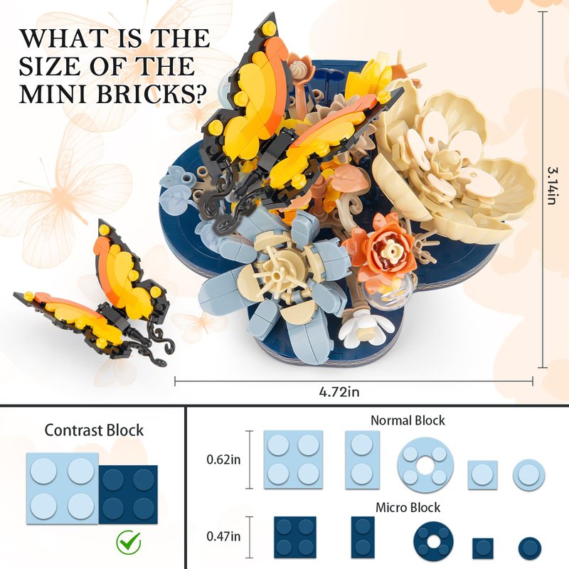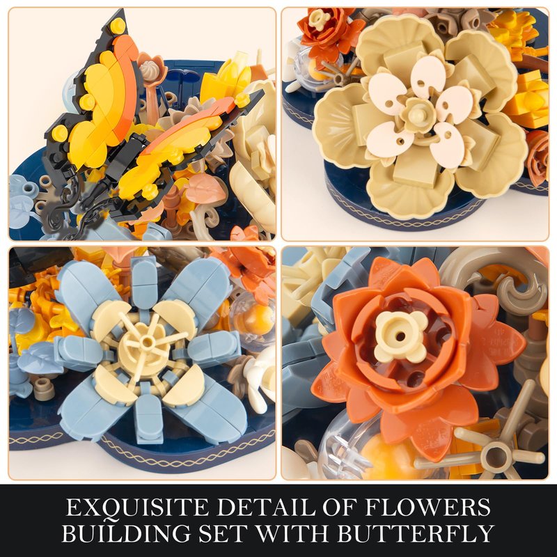 - 【Home decoration Bouquet】The Flower Butterfly Building Set has various shapes and colorful, suitable for home or office flower & butterfly decoration. Enjoy a rewarding building project as you create a plant display to enhance your home or office decor.