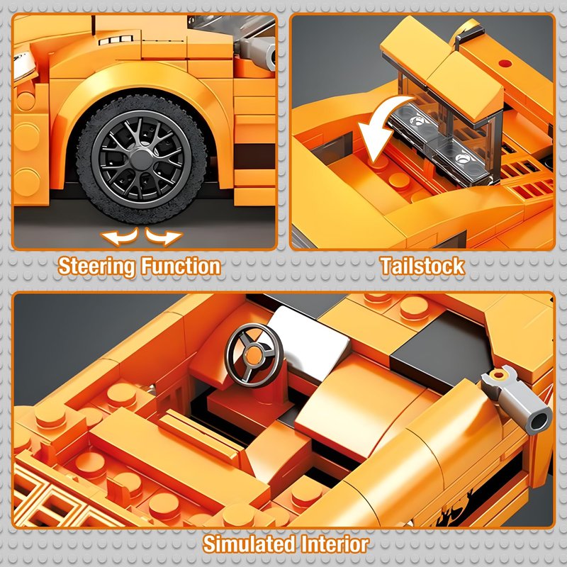 - Exquisite Collection Display:This 911 car building set features a bright orange color scheme on the body and exquisite stickers, making it an excellent showpiece. It is very suitable as a home decoration, placed in your favorite place for display and collection.