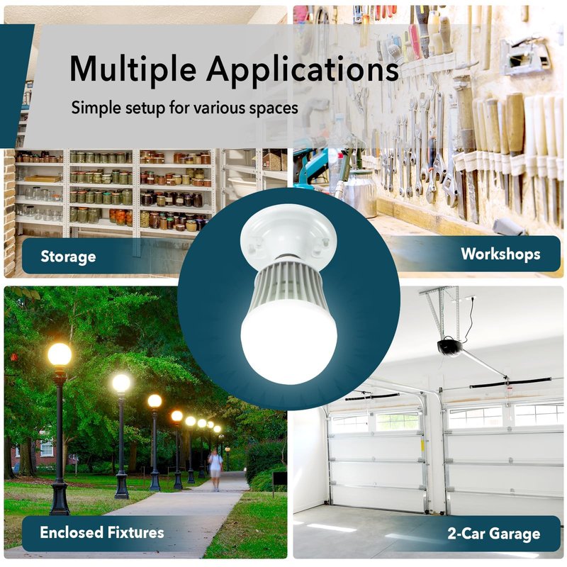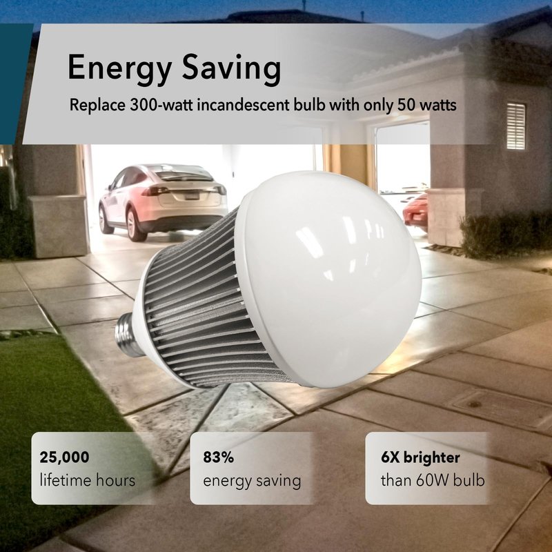 - Impressive Brightness: Emitting 5200 lumens, these LED bulb shine 6 times brighter than a traditional 60W bulb, perfect for illuminating spaces like 2 car garages, barns, workshops, and outdoor light fixtures.