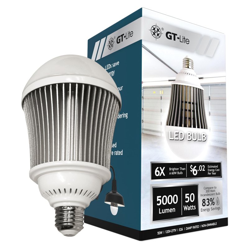 - Style: 5,000 Lumen LED Bulb, 50W, High-Lumen A-Shaped LED Light Bulb, E26