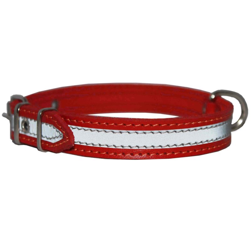High Quality Genuine Leather Reflective Dog Collar 16" Long 3/4" Wide Red Fits 11"-13" Neck