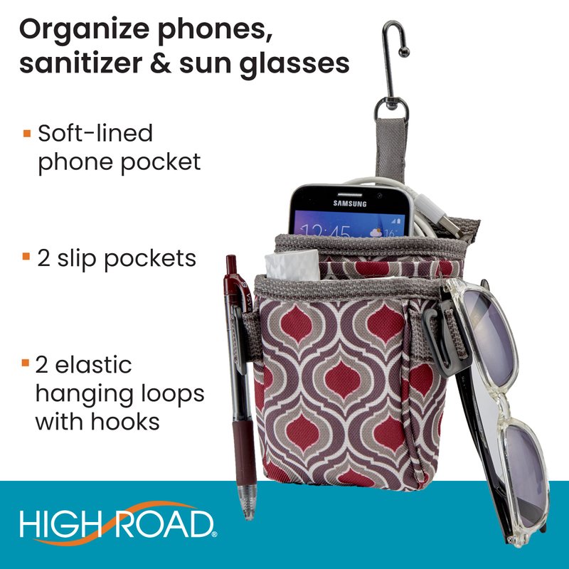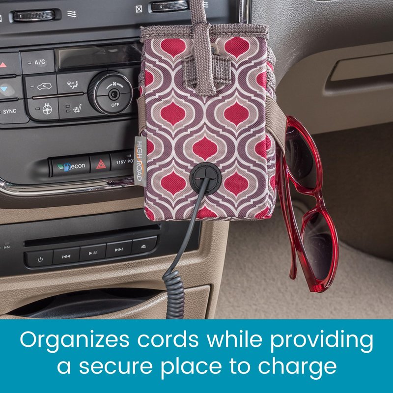 - Universal Fit for Cars, Trucks and SUVs - durable 600D oxford polyester construction, fits android and iphones up to 3" wide and 6" high, Patented - High Road has developed problem-solving car organizers in Portland Maine since 1990
