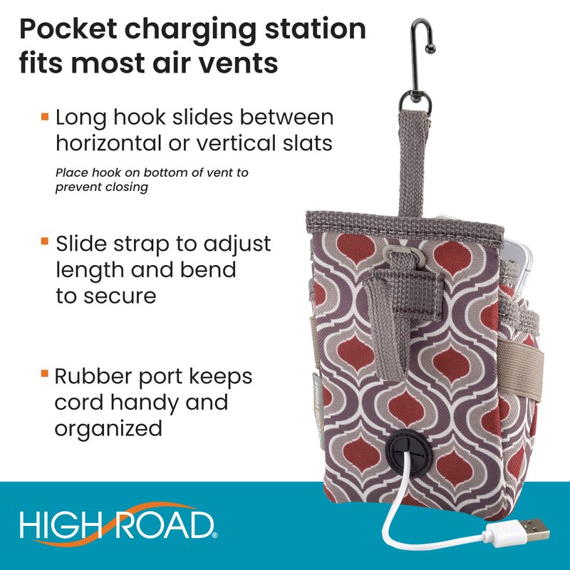 High Road DriverPockets Car Phone Holder Air Vent Pouch and Front Seat Organizer with 3 Pockets, Hanging Hooks and Charging Port