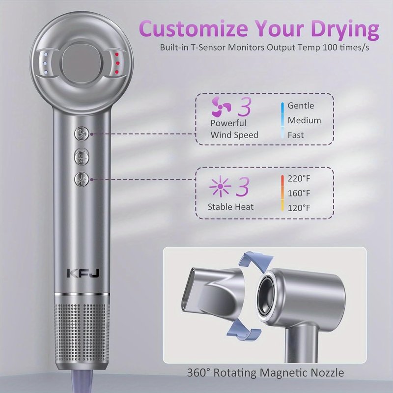 - Ultra Fast Drying: high speed hair dryer features a powerful 110,000RPM brushless motor that provides a strong airflow up to 23 m/s, which can quickly dry your hair and is 2x faster than traditional hair dryers.