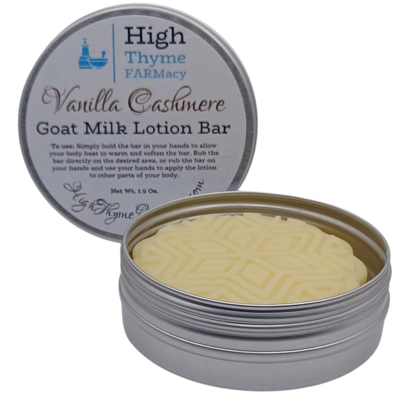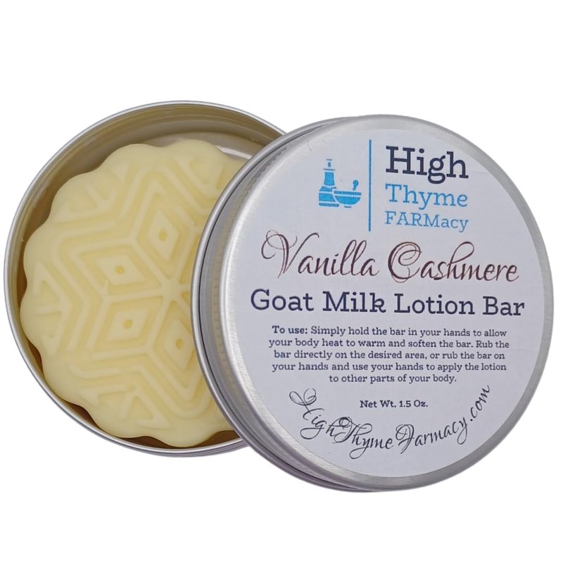 High Thyme FARMacy Vanilla Cashmere Lotion Bar - Goat Milk Lotion Bars for Dry Skin - Beeswax Lotion Bar - Convenient Travel Lotion - Eco Friendly Solid Lotion - Zero Waste Lotion