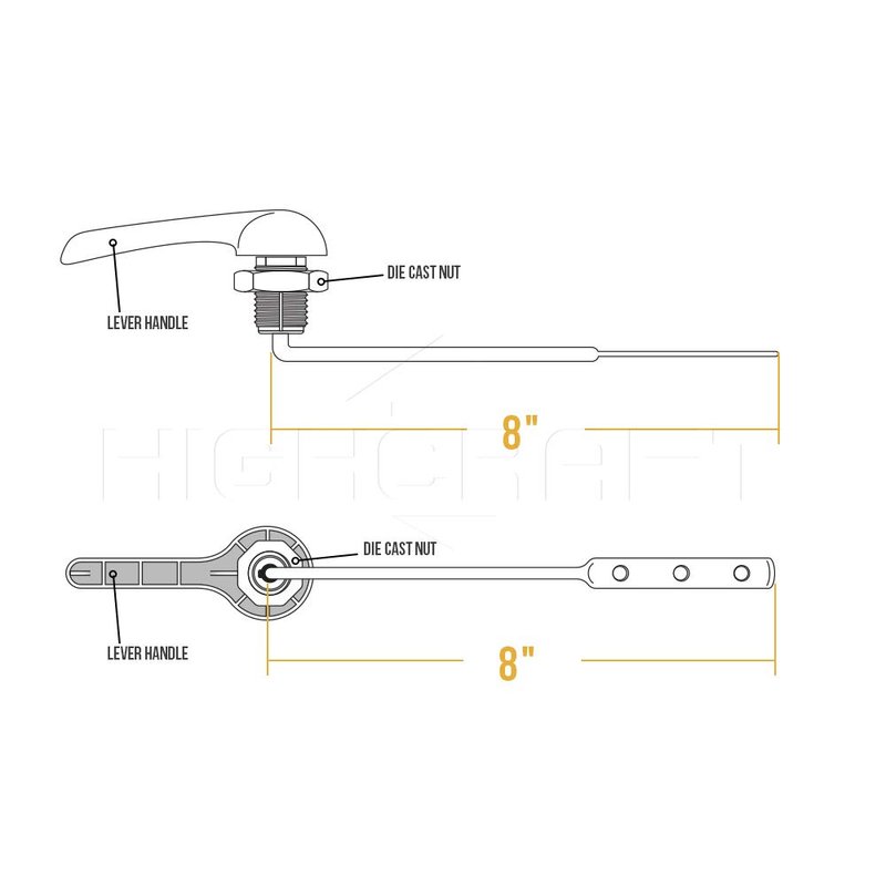 - 8-Inch arm length - this Chrome finish toilet handle has an 8-inch maximum flush arm length.