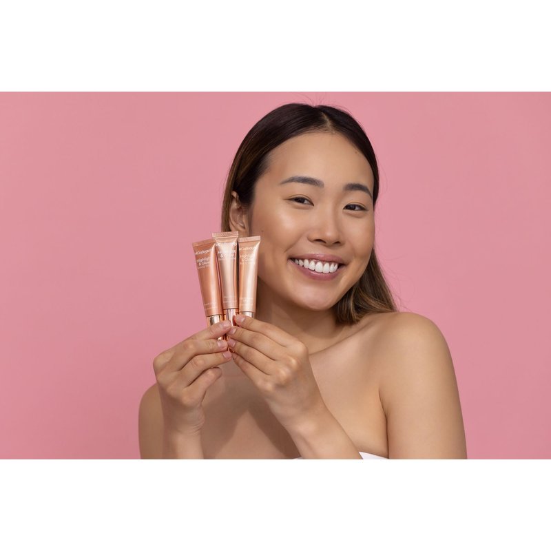 The MCoBeauty HIGHLIGHT & GLOW BEAUTY WAND is the perfect illuminating liquid highlighter wand to achieve gorgeously glowing skin in a flash! The creamy, light-reflecting formula features super fine, pearlescent particles that capture and reflect light, while the soft cushion applicator dispenses product evenly, making it ultra blendable and easy to use.