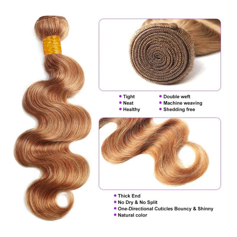Highlight Human Hair Bundles P27/30 Bundles Honey Blonde Body Wave Bundles Brazilian Virgin Remy Human Hair Extensions 22 24 26 Inch 2 Tone Honey Blonde Mixed Light Brown Bundles