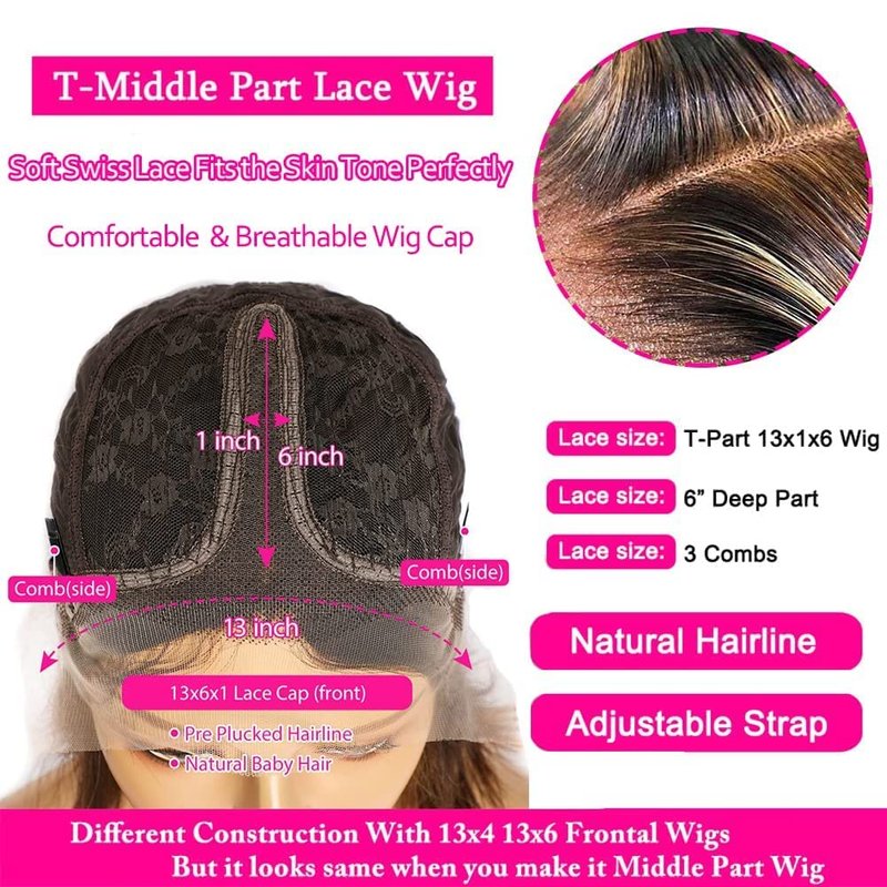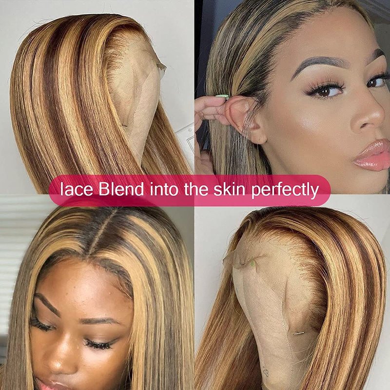 Highlight Lace Front Wig Human Hair Straight 13x6x1 Transparent HD Lace Frontal Wigs Pre Plucked With Baby Hair 150 Density 4/27 Ombre Blonde Brazilian Virgin Human Hair Wigs for Black Women 18 Inch