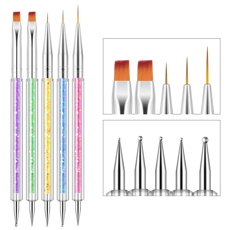 - Nail Art Set: Includes 5 pieces of Dual-ended Nail Art Brush(Nail Dotting Pen & Nail Art Brush).