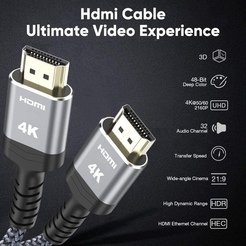 - [Life-Time Support] Our store promised you will get prompt response to 10 hours ! You could purchase one with confidence because all costs covered in replacement process of this hdmi cable. Buy RISK FREE by clicking on the yellow button " Add to Cart "or " Buy Now " and enjoy high quality of our HDMI cable . Package Contents : 1xPack (20FT )4K HDMI Nylon Braided Cable .