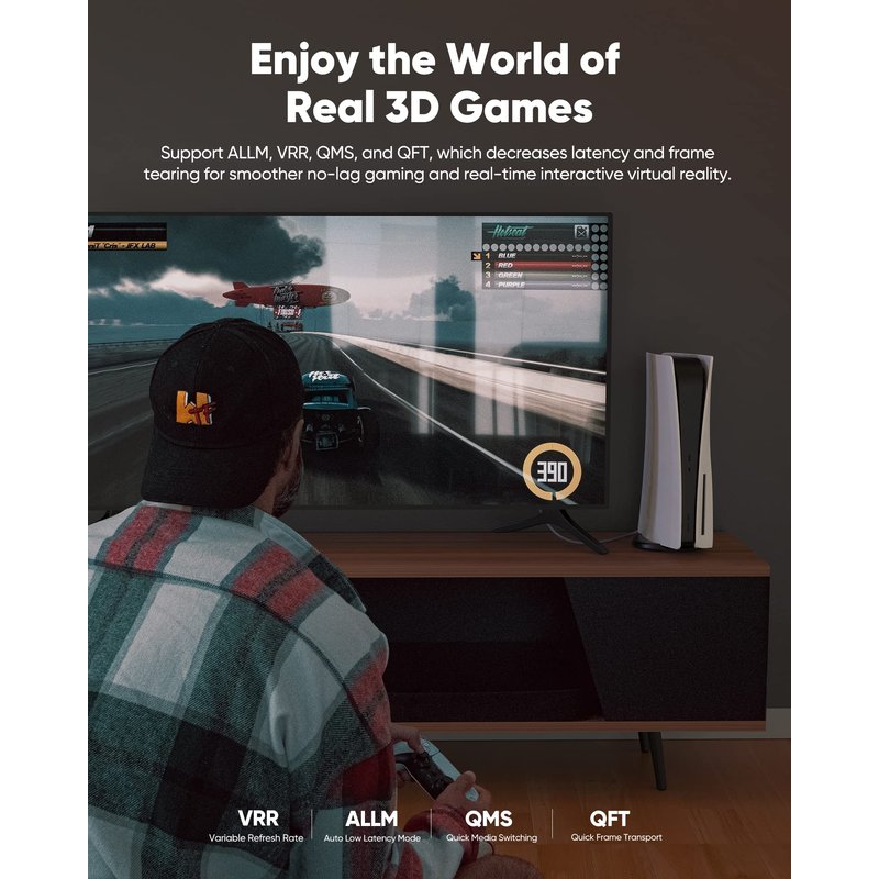 - 【For Game Enthusiasts】 This 8K Ultra High Speed HDMI Cable is not limited to 4K@60HZ, it can break through 4K and achieve 8K ultra-high image quality. It can also achieve a super smooth picture of 4K@120HZ. Its latest game mode supports variable refresh rate, maximizes the value of the graphics card and CPU, and is more accurate in the processing of rendered images. When the scene is switched, the refresh rate will change accordingly to obtain a smoother and more detailed picture.