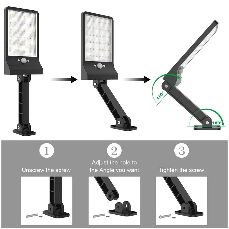 - 【BRACKET ADJUSTABLE DESIGN and EASY INSTALLATION】 The led solar wall light can be swiveled 180° for up and down to adjust the motion sensor , Rotate to any angle to meet your diverse needs, can be mounted directly on the wall, including screws, rotatable fittings, multi-angle mounting
