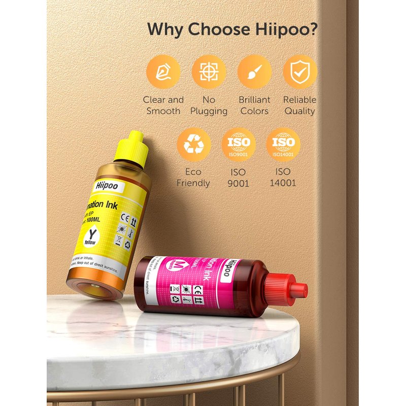 Hiipoo Sublimation Ink Refilled Bottles Work with WF7710 ET2760 ET2720 ET2803 ET2800 ET15000 C88 C88+ Inkjet Printer Heat Press Transfer on Mugs Plates T-Shirts Pillows Phone Case